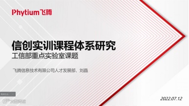 飞腾信息技术有限公司人才发展部刘晶就工信部重点实验室课题“信创实训课程体系研究”,从“课题背景、信创实训课程体系研究、飞腾陆续课题方向、申请指南概况”四个方面做了详细介绍。