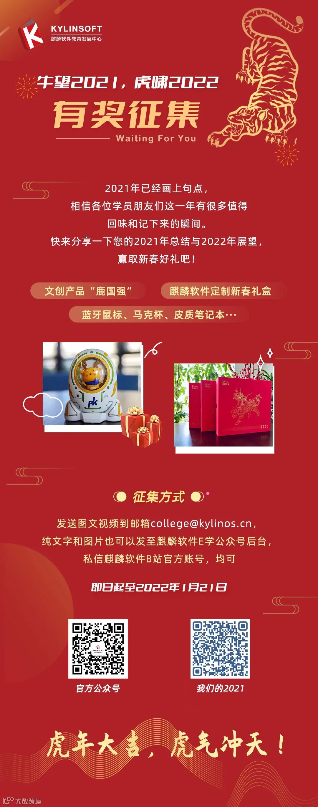 我们也十分欢迎您和我们一起展望2022:分享您对操作系统技术发展和网信产业的展望,对麒麟软件的祝福,分享您新一年的学习计划、小目标,均可!各种新春好礼为你而来!