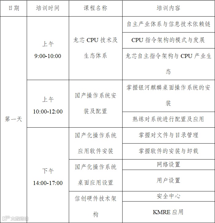 为验证《信息技术应用创新专业人员能力要求》标准中对“系统工程师”的要求,同时解决信创人才在产业生态、技术保障等各方面人才短缺问题,内蒙古电子文件自主可控技术协会(信创人才标准应用与验证试点单位)、龙芯中科技术股份有限公司(信创人才标准验证试点单位)、麒麟软件有限公司(信创人才标准验证试点单位)发挥各自优势,联合举办本次培训。拟通过培训使学员掌握软硬件升级和迁移适配等专业技术能力,完善信创领域专业人员知识结构,拓宽职业技能发展渠道,推动内蒙古地区信创技术生态,促进信创产业持续发展。