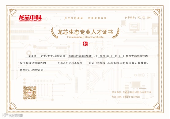龙芯生态专业人才证书