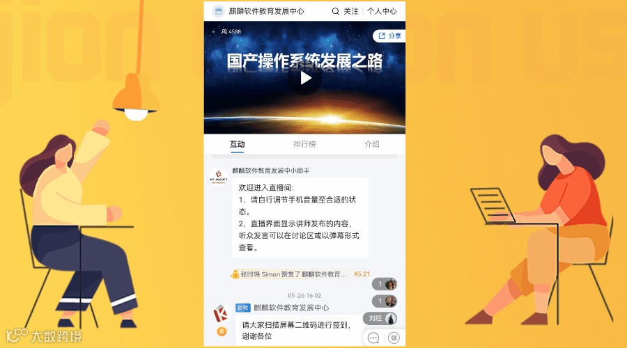 网信产业呈现怎样的发展趋势、国产操作系统如何进行应用创新、麒麟软件如何打造人才培养体系……5月26日下午,麒麟软件教育发展中心精心打造的网信科普课程——《国产操作系统发展之路》直播授课,天津市大学软件学院组织了1000多位师生线上观看。活动中,直播间共有近4000人次在线,学员们的学习热情高涨。