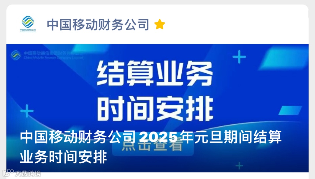 中国移动财务公司2024年12月31日8点30分,中国移动财务公司2024年年终结算工作正式拉开帷幕。