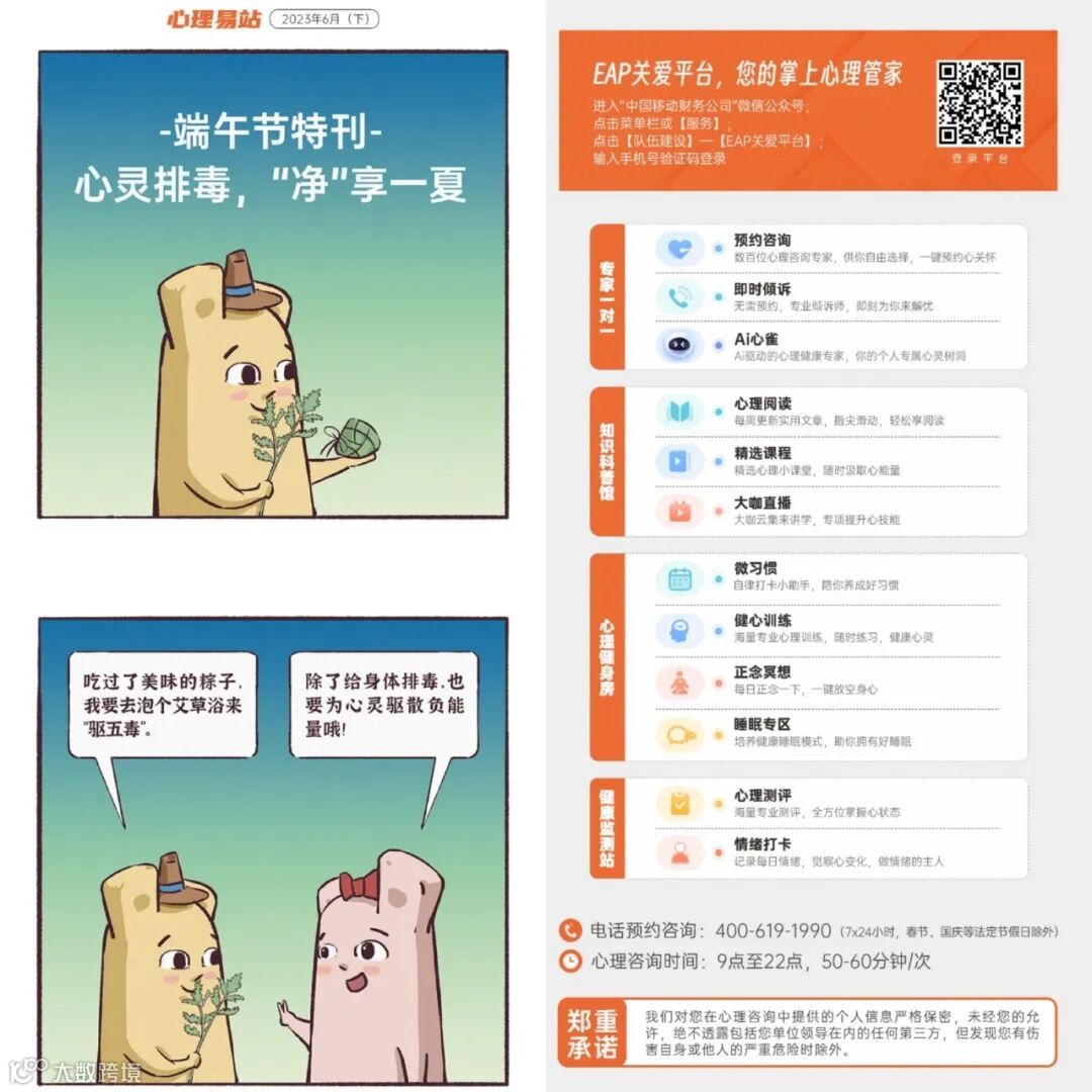 为进一步做好思政工作,有效发挥员工心理健康关爱项目积极作用,5-6月间,结合“心理健康节”契机,中国移动财务公司以“525吾爱吾心·遇见自己”为主题,开展了为期3周的员工心理关爱月活动,累计吸引150余人次参与。