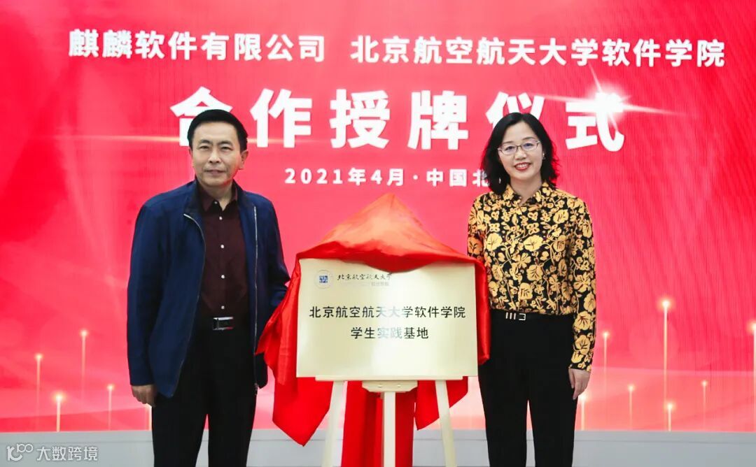4月28日下午,在40余名同学的见证下,北京航空航天大学软件学院党委书记张德生,麒麟软件有限公司高级副总裁、人力资源部总经理、麒麟软件学院院长张娜共同为“北京航空航天大学软件学院学生实践基地”揭牌,正式开启了麒麟软件、北京航空航天大学校企合作的新篇章。北京航空航天大学软件学院党委副书记孙铭涛、麒麟软件有限公司工会副主席、党群工作部主任程志强等有关领导出席了本次揭牌仪式,仪式由麒麟软件学院人才生态建设总监杭斯乔主持。
