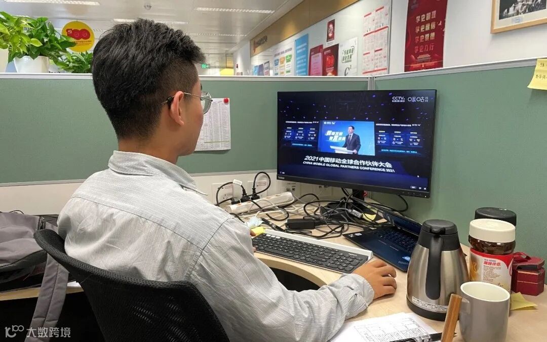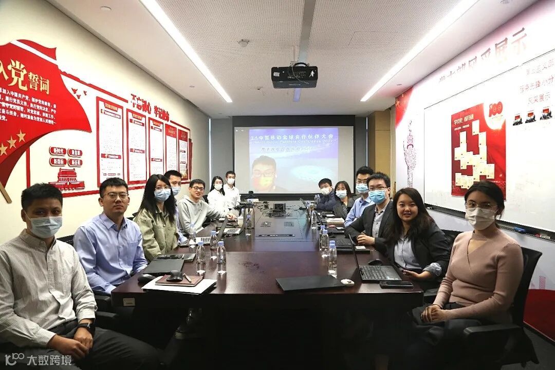 11月3日,在中国移动财务公司团支部联合第二党支部开展的“青年大学习青春5G+”主题团日活动上,公司青年员工代表宋衡化身主播,利用云视讯app,在2021中国移动全球合作伙伴大会现场边直播讲解、边与屏幕前的团员青年互动交流,带领大家参观了合作伙伴大会的主要展区,围绕5G消息、智慧家庭、智慧医疗、产业链金融、合作商应用等热点话题与团员青年探讨分享,并透过大屏幕一同合影留念。