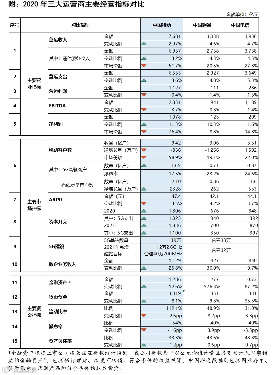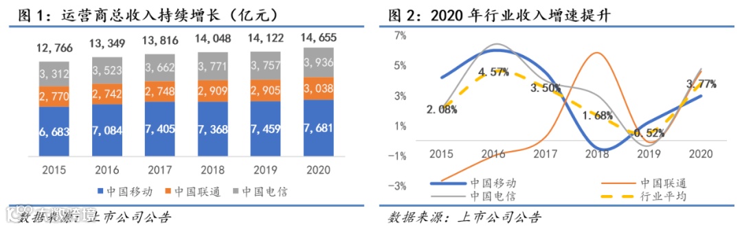 2020年,在5G普及加快、业务结构持续优化、市场竞争格局趋缓、降费压力缓解、共建共享促进效率提升等多方面因素影响下,三大运营商经营情况总体改善,行业拐点基本确立。与此同时,去年下半年以来,美方对三大运营商采取的一系列措施,导致股价估值跌至了历史低位。2021年,随着各项利空出尽,三大运营商股价将走出谷底,迎来新一轮景气周期,其中,中国移动(以下简称“公司”)受益于行业领先地位和优异的盈利能力,或表现最佳。