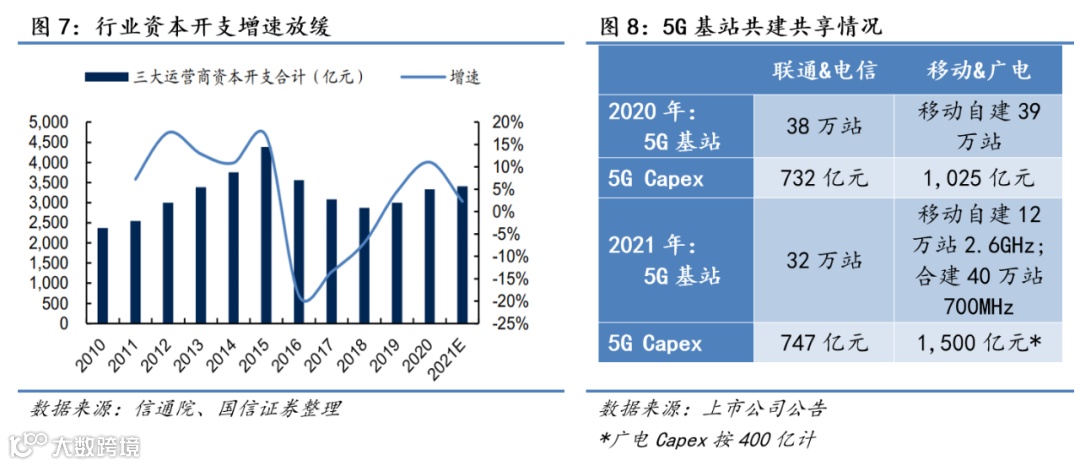 联通和电信方面,2020年实现了5G基站100%共享,合建38万站,新增4G共享基站17万站,双方共节约投资850亿元;2021年,双方计划合建5G基站32万站。我公司和广电方面,2021年初双方正式签署共建共享协议,在不考虑其他投入的情况下,预计双方可以实现近500亿元的节约;此外,我公司2021年还计划建设12万站2.6GHz基站,合计新增5G基站将达52万站。