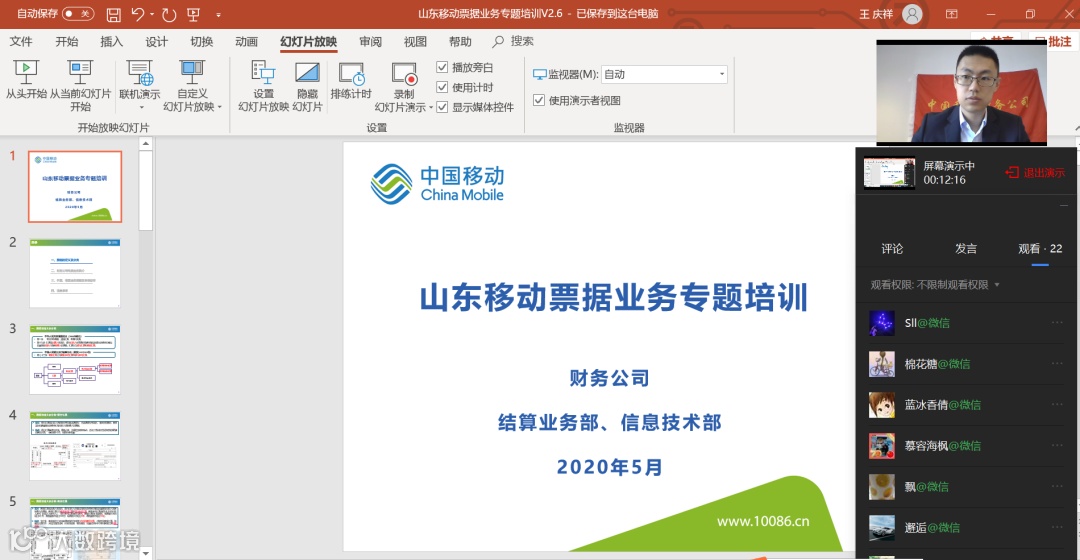 收到需求反馈后,财务公司快速响应。为尽快、尽早解决成员单位提出的业务需求,为省市公司直至网格作战单元做好服务支撑,财务公司第三党支部注重党建引领,把协同主业发展、服务成员单位的工作摆在重要位置,联合第一党支部研究确定通过在线直播的形式向山东移动进行票据业务专题培训,并分别遴选相关业务技能强的党员进行充分准备。5月27日上午,根据疫情防控常态化要求,第三党支部和第一党支部的2名党员同志以视频直播方式,重点围绕票据分类、财务公司电票简介、开收票业务流程及系统操作、注意事项等方面内容,面向山东移动省本部及16个地级市分公司的财务人员进行了票据专题培训,并通过在线互动的方式解答参训人员提出的多项问题,受到山东移动及各分公司的广泛好评。