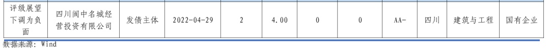 ★ 评级展望下调为负面事件1起,为四川阆中名城评级展望被调整为负面。