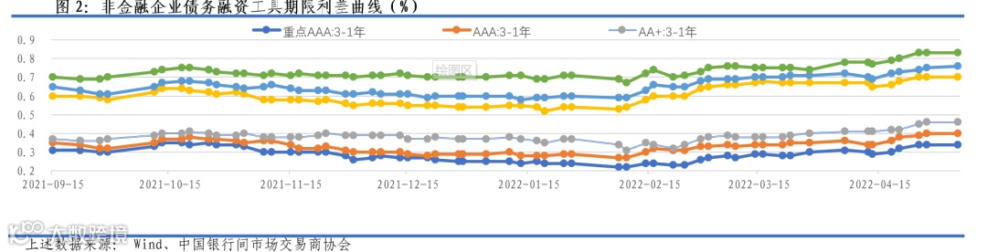 ★ 收益走势:上周3-1年期、5-1年期重点AAA、AAA、AA+债券期限利差保持稳定。