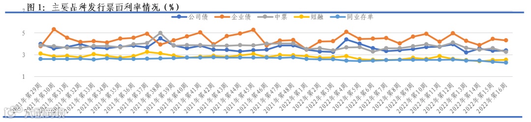 ★ 发行利率:上周债券一级市场主要品种发行票面利率维持震荡趋势。