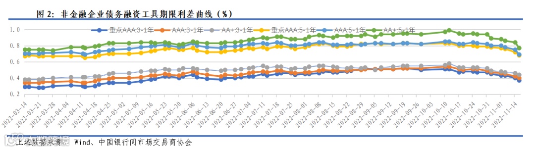2、上周3-1年期、5-1年期重点AAA、AAA、AA+债券期限利差有所下行。