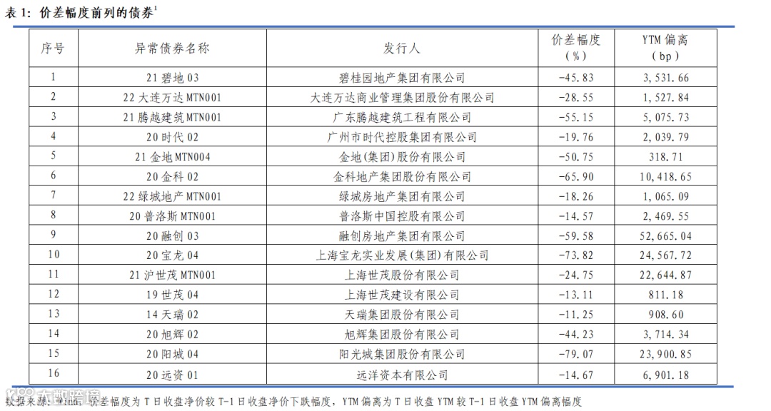 通过观察债券交易价格偏离程度,过去一周涉及16家发债主体相关债券成交价格异常。