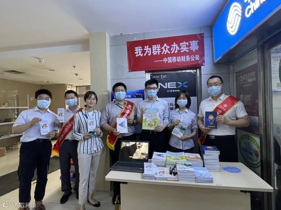 中国移动财务公司党委认真落实“我为群众办实事”要求,发挥自身跨通信和金融运营优势,整合合作银行以及营业厅资源,精准选取老年客户多、宣传效果佳的营业厅,于6月25日下午开展“我为群众办实事·携手同心反诈骗”——金融、电信反诈骗宣传志愿服务活动。