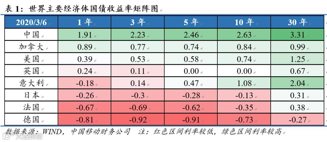 海外政策方面,美联储3月3日紧急降息50bp再掀降息潮,市场预期3月降息空间还有50-100bp。疫情蔓延只是降息的表面原因,深层次原因在于美国持续的高资产价格和低经济增速,然而“流动性陷阱”使得降息的边际政策效果有限,进一步倒逼央行加码宽松,进而深陷负利率(见表1)。