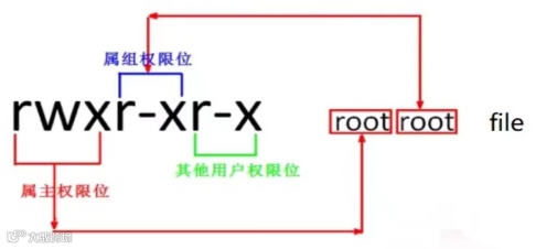 在Linux系统中,权限用来定义用户能做什么、不能做什么。针对文件定义了三种身份,分别是属主 Owner、属组 Group、其他人 Others。每种身份又对应三种权限,分别是读 read、写 write、执行 execute。