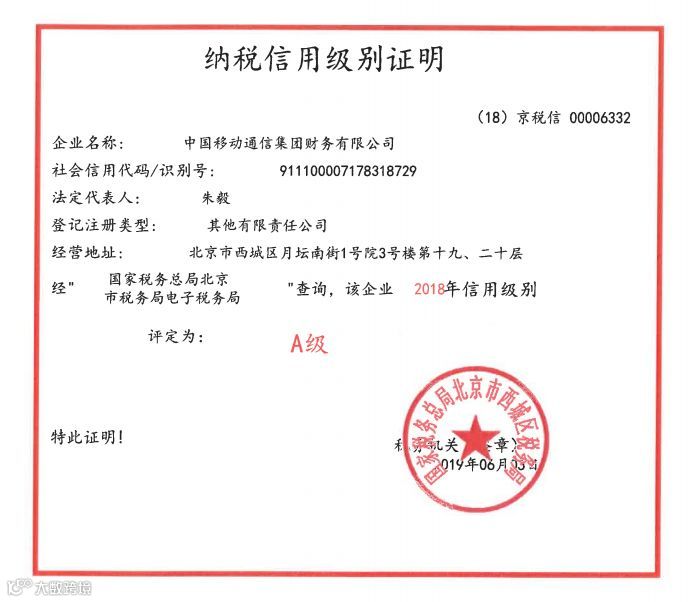日前,财务公司被国家税务总局北京市税务局评为2018年度“纳税信用A级纳税人”,这是公司自2015年以来,连续第四年获评A级纳税人。