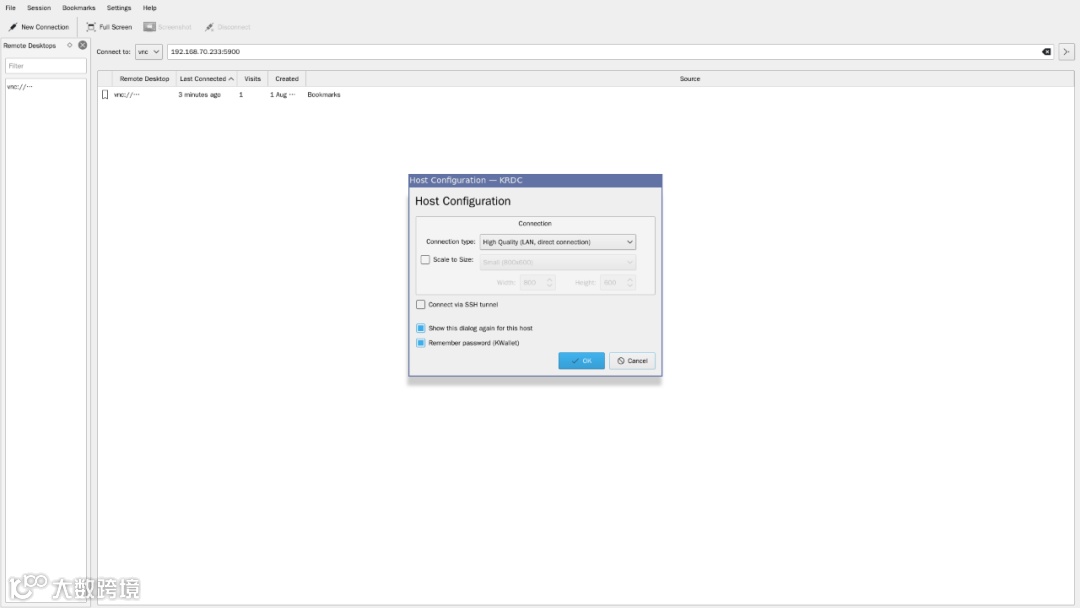 VNC 服务端可选 KRFB(KDE)、Vino(GNOME)、X11VNC。在优麒麟的 UKUI 桌面环境中,使用 KRFB + KRDC 体验稍好一些。安装 KRFB 、KRDC 只需要简单的执行: