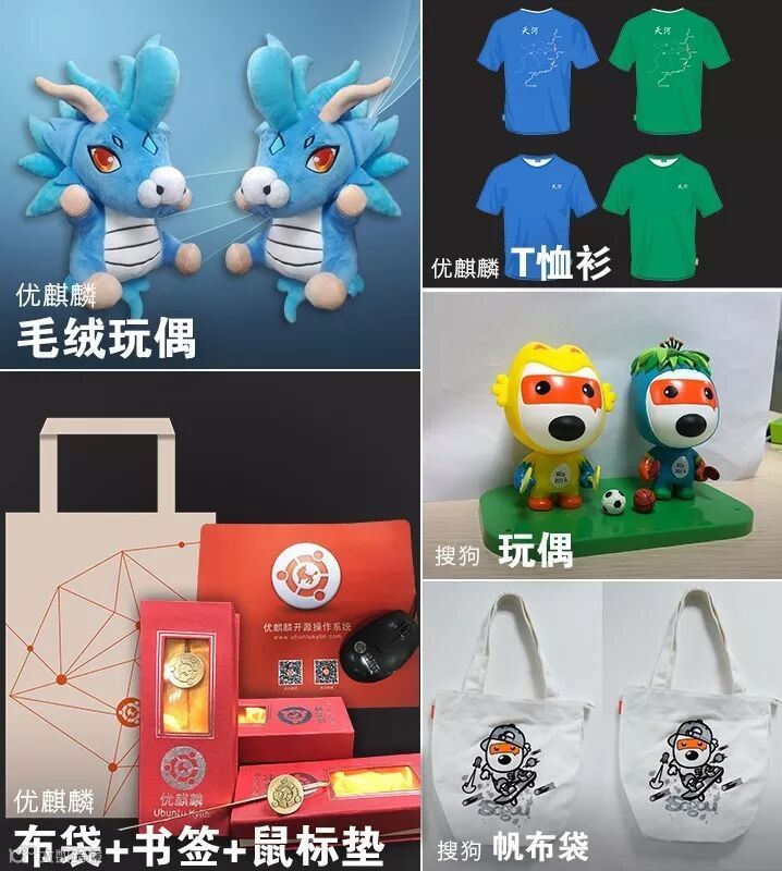 附:活动纪念品(有优麒麟公仔、优麒麟T恤、搜狗输入法汪仔等等,惊喜不断!)