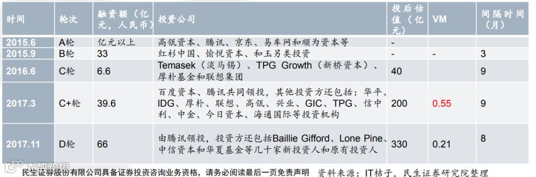 分析其上市前的融资情况和营收情况,其2015,2016年未有收入,因此也无法使用PS估值。从VM指数看,公司的企业价值在2016.6-2017.3处于一个估值增速较快的状态,主要是纯电动超跑EP9于2016.11首发,并随后刷新多条赛道记录,证明企业的研发能力(VM指数详解 P21)。