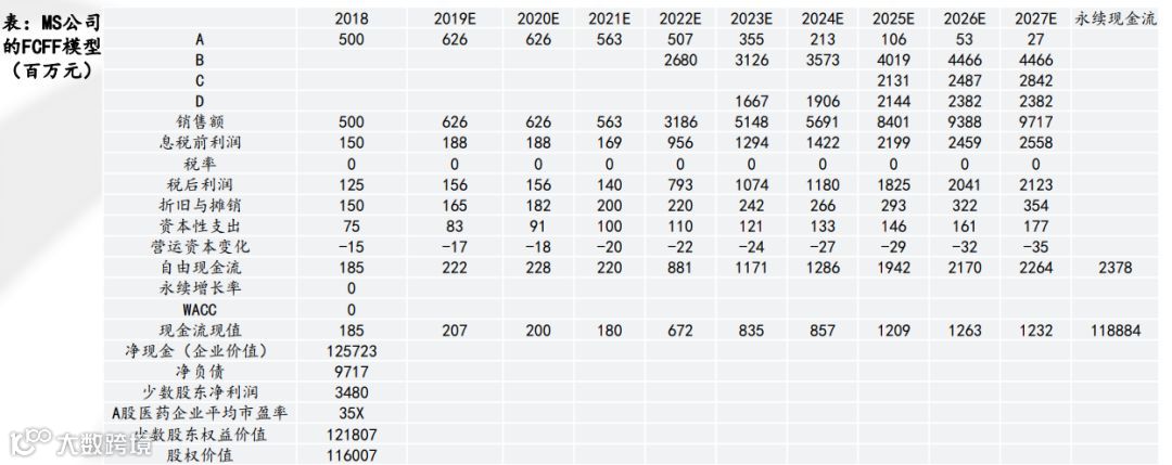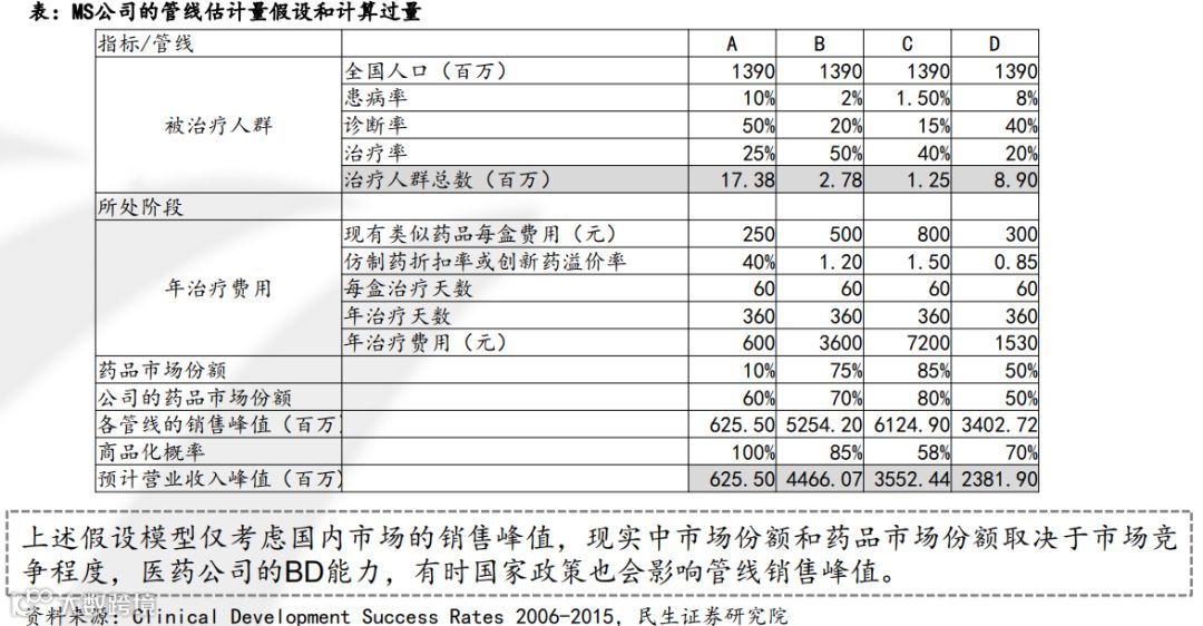 医药:研发管道FCFF估值方法 — 4管线虚拟公司MS为例