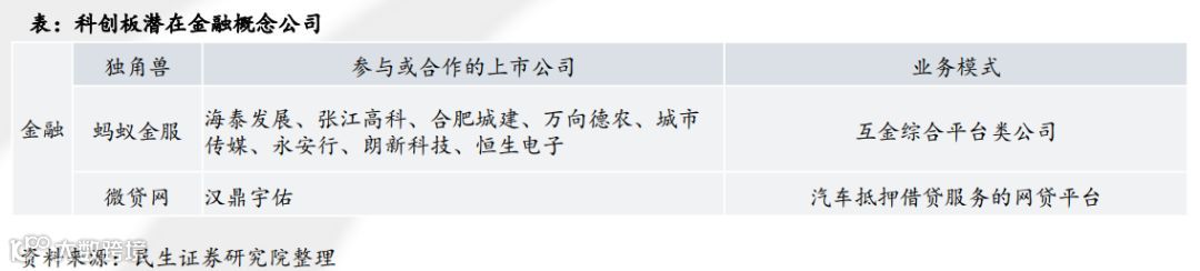 传言有望上科创板的金融独角兽企业主要是以提供支付、借贷业务等线上业务为主的互联网金融企业,如蚂蚁金服,微贷金融等。