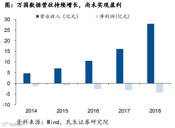 与美股其他云计算公司相似,2014-2018年万国数据的营业收入持续增长,但仍尚未达到盈亏平衡,因此应采用PS对公司进行估值。