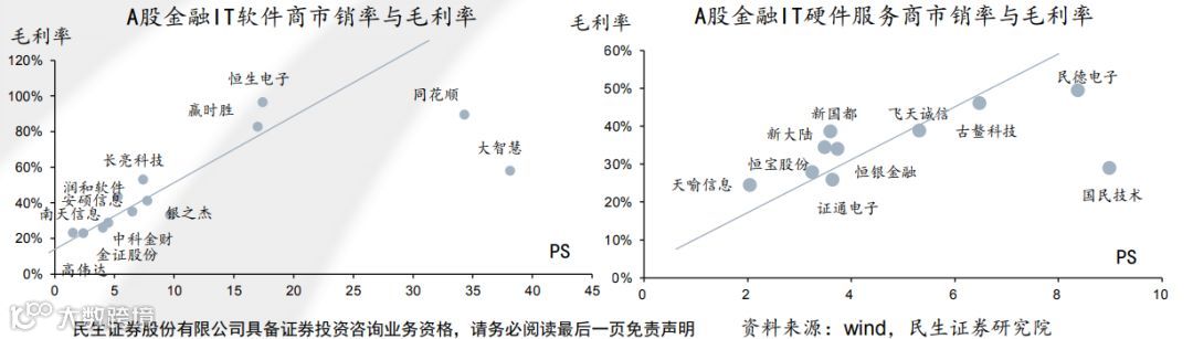 软件企业:恒生电子、同花顺等高毛利率企业,市销率在15X-35X区间。