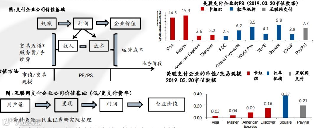 支付企业:市值/交易规模,PS估值方法