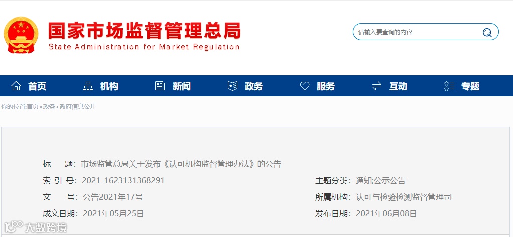 现发布修订后的行政规范性文件《认可机构监督管理办法》,自发布之日起施行。