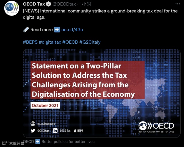 经合组织在声明中称,代表全球90%以上GDP的136个国家同意达成这项具有里程碑意义的全球企业税协议,从今日起不会征收新的数字税。