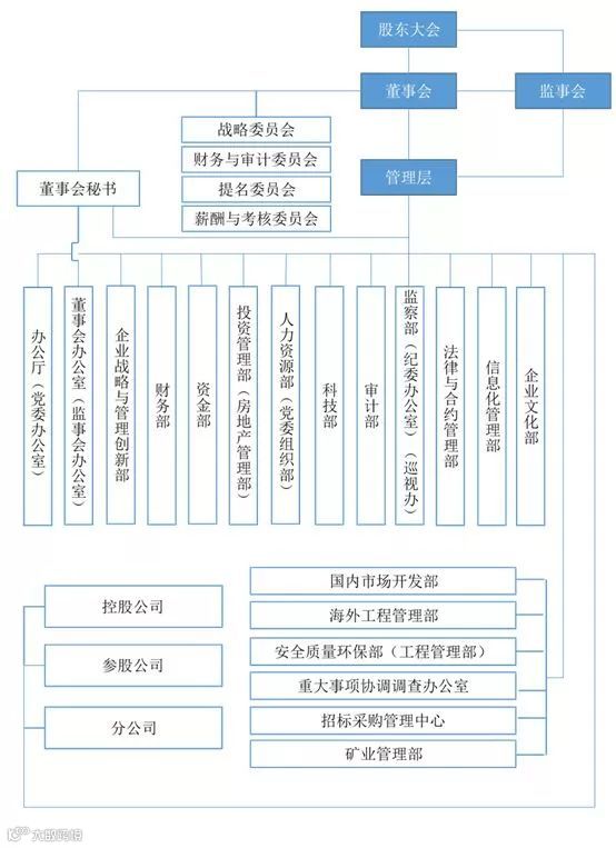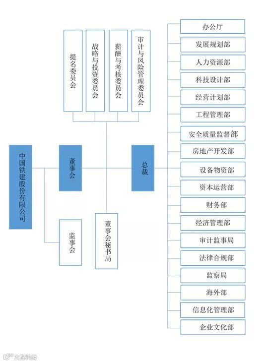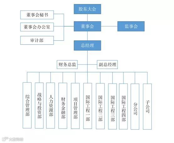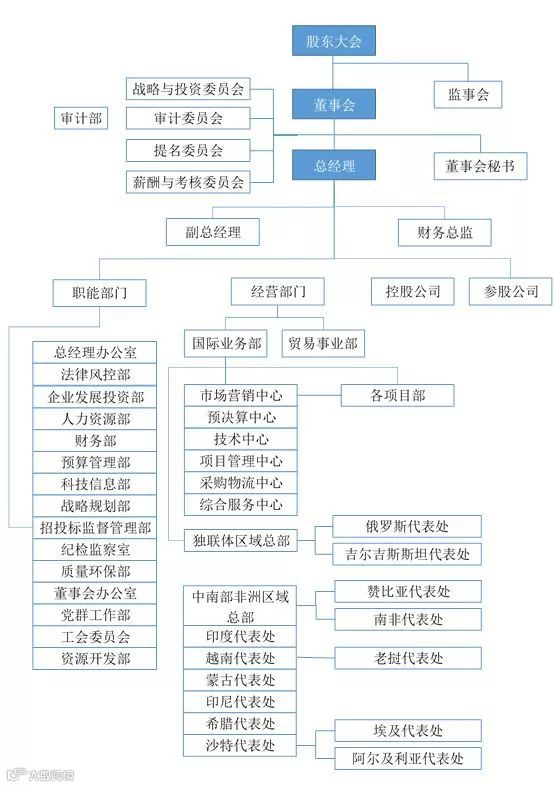 监控部门。本文所列举建筑央企的组织架构,主要以职能型和事业部型相结合的组织架构为主。这种相结合的组织架构,