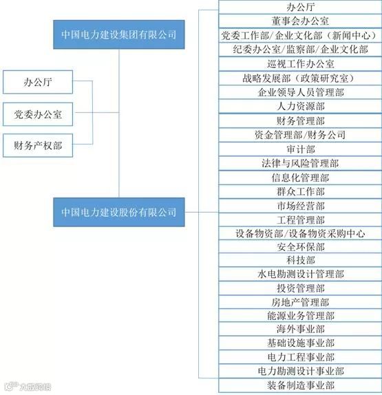 事业部等等;通过具体事业部和子公司的设置简明扼要地看出企业的核心业务,例如中国交建为房地产、装备制造、路桥和港航专门设置事业部,中国核建为核电工程和核能产业设置事业部,中国电建为水电勘测设计和电力勘测设计设置事业部等等。