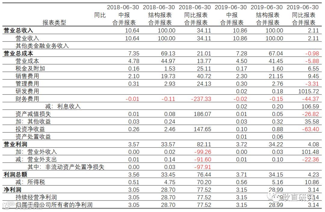 如:涪陵榨菜2019年中报营收同比增速下降至2.11%,营业成本同比下降5.88%,提价因素,导致毛利率上升,成本费用率、管理费用率下滑,销售费用同比增长9.45%,与其销售策略调整,销售团队从400多人扩张到500多人,渠道下沉、新销售渠道开拓有直接关系。