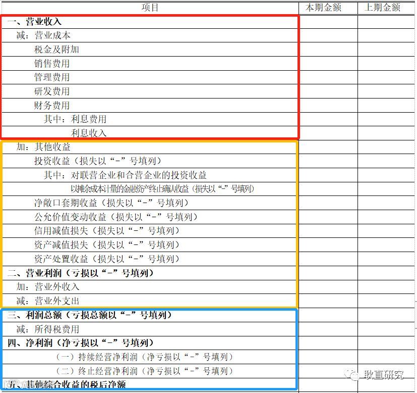 但为了便于理解,我们根据利润贡献的性质不同,将利润表用不同颜色划分为三个部分。