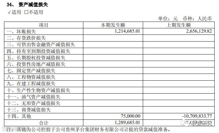 贵州茅台2018年资产减值损失附注,详细罗列了十四项资产减值损失类型。