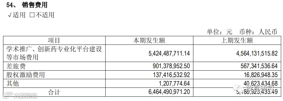恒瑞医药2018年销售费用:
