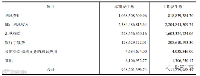 财务费用比较难于造假,可以比较客观的反映企业资金运用情况,如可以通过利息收入和货币资金项目简单计算收益率,用以简单验证货币资金使用效率及真实性。优质企业财务费用一般为负值(利息收入大于利息支出)