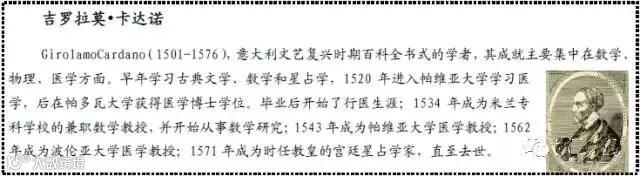 卡达诺是文艺复兴时期的典型人物,也是赌徒中的赌徒。其关于赌博的论文名叫《机会赌博之书》(1545年左右),通过掷骰子实验方式开始,最终以理论概念的结合收尾,是人们第一次认真努力地去研究概率的统计原理。