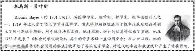 贝叶斯是在这个领域有着重要贡献的另一位数学家。他的一篇名为《解决机会学说中一个问题的文章》的论文非常杰出新颖,引人瞩目。这篇文章探讨了这样一个问题:已知未知事件发生和失败的次数,求某一次发生的概率值在两个可知的概率值之间的概率。