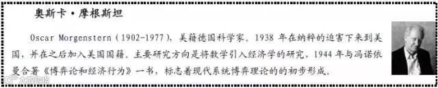由物理学家约翰˙冯˙诺依曼和经济学家摩根斯坦在1944年完成,1953年出版的《博弈论和经济行为》是有关博弈论的经典著作,同时也是博弈论在经济和商业领域应用的经典著作。该书时时刻刻都在主张用数学的方法来解决经济决策的问题。纽曼和摩根斯坦并不认为“经济学中人类的和心理的因素会阻碍数学分析”。回想到在16世纪之前的物理学和18世纪之前的化学和生物学中都缺少数学的分析方法,他们认为在这些领域的早期,数学应用的前景和现在数学在经济领域中应用的前景一样,都需要进行必要的修正。