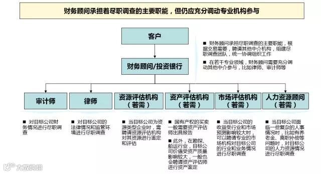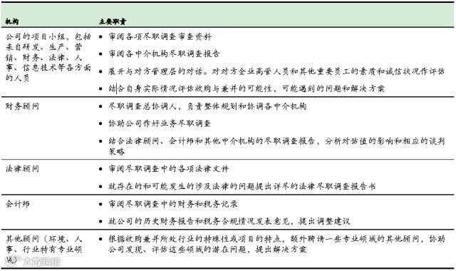 尽职调查,需要公司的项目小组、财务顾问、法律顾问、会计师以及其他顾问通力协作。