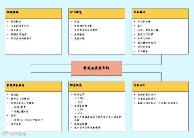 管理层介绍会一般在潜在投资方参观了资料室后举行,这使投资方能问及一些在保密信息备忘录和数据室中没有提供的信息;另外管理层介绍会也是买卖双方直接借此接触了解对方性格、素质、诚信的最佳时机。