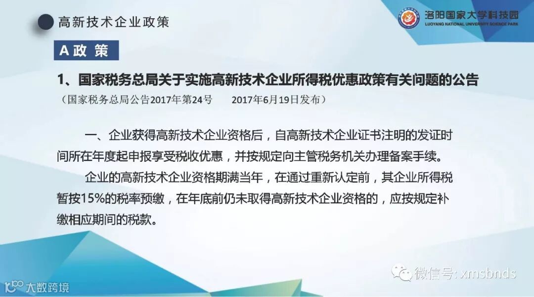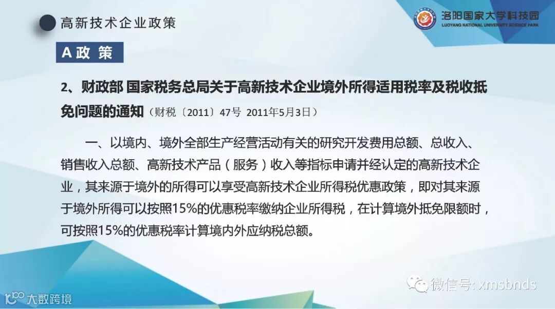 导读:高新技术企业税收优惠政策解读2018-03-02 高新技术企业认定资讯点击上面蓝字关注我微信号:gaoqiz
