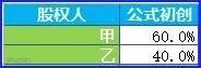 股东注资 :假设甲、乙二人建立了企业A,甲乙二人的出资比例为6:4,此时股份比例结构为