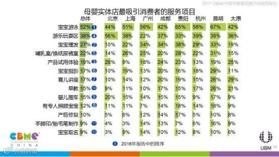 在母婴店最吸引消费者的服务项目调查中,宝宝游泳、宝宝玩耍区、宝宝理发需求量最大,位列前三,市场前景看好。