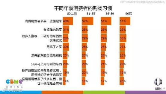 母婴消费者还热衷于囤货,52%的消费者会有促销就多买一些囤起来的习惯,81-85的妈妈们最爱囤货。