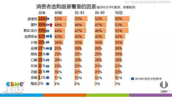 婴儿奶粉、纸尿裤、辅食是最受品牌知名度影响的品类,婴童服装、玩具、推车等受品牌的影响程度较弱;相比其他年龄阶段的妈妈,90后消费者最为看中婴儿奶粉和辅食的品牌。