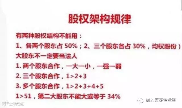 4、股权结构不合理的企业永远做不大,股权分配不好的企业很容易分裂。如何避免一山二虎、三国鼎立、五王争霸?