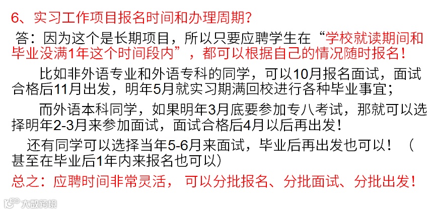 实习面试时间和方式:分批进行网络视频面试(分批报名,分批面试,分批出发)